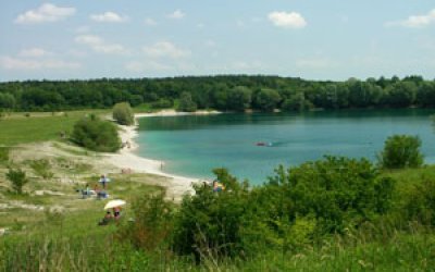 Beschreibung: Das Nordufer des Sees ist eine riesige Liegewiese mit wenig Schatten, während das Südufer mit Weiden viel Schatten bietet. FKK an beiden Seiten, am Nordufer mit der Wiese ist auch Textil. An der West-und Ostspitze fast nur Textil.