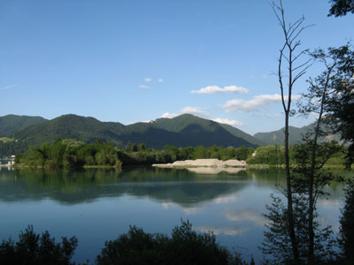 Auf einer Kiesbank, die die Weissach an ihrer Mündung in den Tegernsee geschoben hat, völlig ungestört, bes. an Wochenenden, wenn im Kieswerk kein Betrieb.