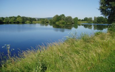 Stimmt, das Gelände ist sehr gepflegt und wird regelmäßig von Vereinsmitgliedern gemäht, außer an den steileren Flächen. Das Publikum ist nett. Störend ist eigentlich nur der Krach von der nahen Schnellstraße B 49. Im See liegt auch noch eine Insel. [01/2007]